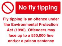 11743K: No fly tipping Fly tipping is an offence under the Environmental Protection Act (1990) Offenders may face up to a £50,000 fine and/or a prison