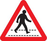 57793: Pedestrians crossing ahead class R2 Permanent 600mm triangle (3mm aluminium composite)
