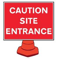 58208: Caution site entrance reflective cone sign 600x450mm (cone not included)