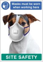 57478: Masks must be worn when working here - dog poster 420x594mm synthetic paper