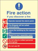 41428E: Fire action brigade dialled automatically with lift Material: 4: Photoluminescent S/A Vinyl Size: E (200x150mm)