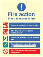 31429H: Fire action auto dial without lift Material: 3: Photoluminescent Rigid Size: H (300x250mm)