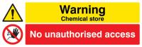 14534G: Warning Chemical store No unauthorised access Material: 1: Rigid Plastic Size: G (300x100mm)