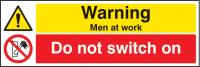 16210G: Warning men at work do not switch on Material: 1: Rigid Plastic Size: G (300x100mm)