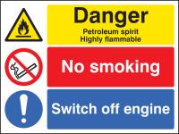 16201K: Petroleum spirit/no smoking/switch off engine Material: 1: Rigid Plastic Size: K (400x300mm)