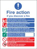 21435E: Multi-lingual fire action auto with lift Material: 2: Self Adhesive Vinyl Size: E (200x150mm)