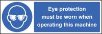 15005G: Eye protection must be worn when operating machine Material: 1: Rigid Plastic Size: G (300x100mm)