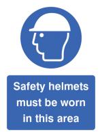15016P: Safety helmets must be worn in this area Material: 1: Rigid Plastic Size: P (600x400mm)
