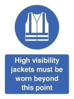 25216E: High visibility jackets must be worn beyond this point Material: 2: Self Adhesive Vinyl Size: E (200x150mm)