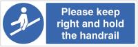 25489G: Please keep right and hold the handrail Material: 2: Self Adhesive Vinyl Size: G (300x100mm)