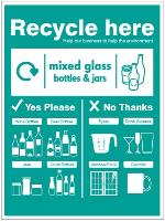 16675H: Mixed glass bottles & jars - WRAP Recycle here sign Material: 1: Rigid Plastic Size: H (300x250mm)