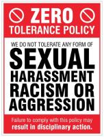 17116K: Zero tolerance policy - sexual harassment, racism, aggression Material: 1: Rigid Plastic Size: K (400x300mm)