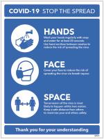11263K: COVID-19 Stop the spread - Hands Face Space Guidance Material: 1: Rigid Plastic Size: K (300x400mm)