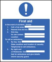 26020H: First aid in the event of accident / illness Material: 2: Self Adhesive Vinyl Size: H (300x250mm)