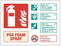 21119S: P50 Foam spray extinguisher identification Material: 2: Self Adhesive Vinyl Size: S (75x200mm)