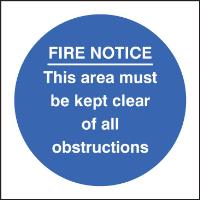 21613N: Fire notice this area must be kept clear of obstructions Material: 2: Self Adhesive Vinyl Size: N (400x400mm)