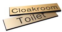 51497: Engraved Sign with adhesive backing - 140x35mm dia Black text on brass effect