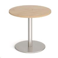 Monza circular dining table with flat round brushed steel base 800mm - Kendal oak