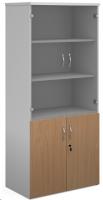 Duo combination unit with glass upper doors 1790mm high with 4 shelves - white with beech lower doors