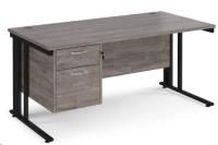 Maestro 25 straight desk 1600mm x 800mm with 2 drawer pedestal - black cable managed leg frame, grey oak top