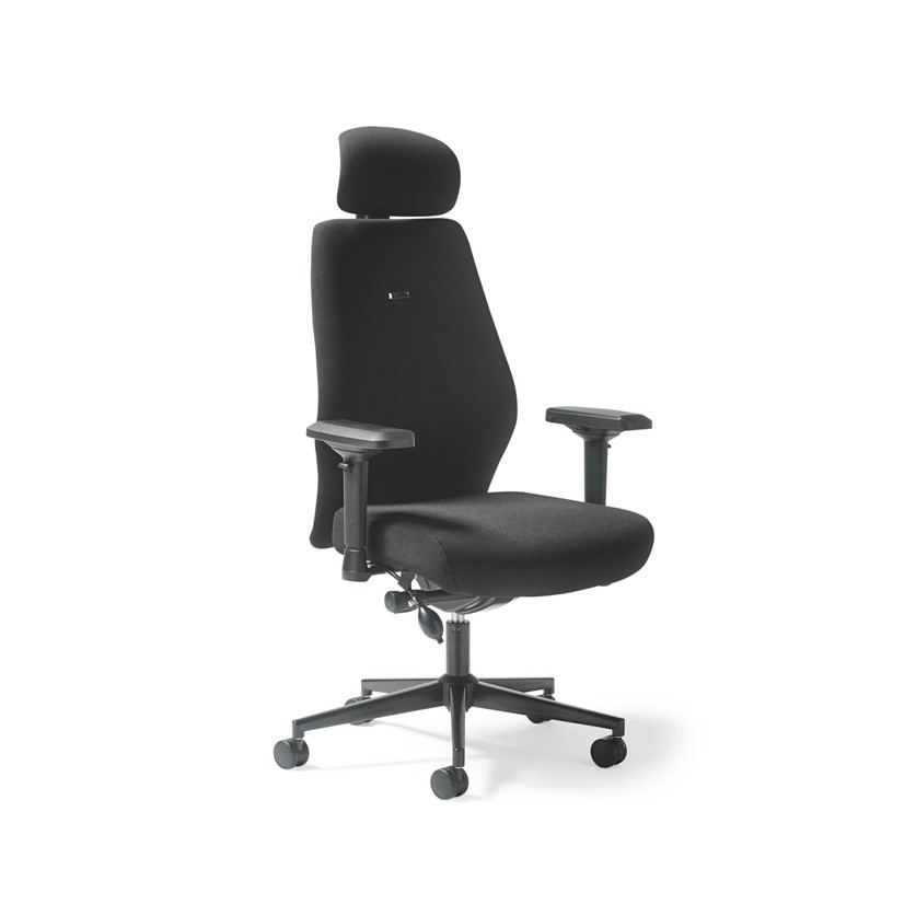 Hatha high back posture task chair with black fabric seat and back, headrest & adjustable arms