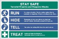 21746H: Stay safe - run, hide, tell, treat Material: 2: Self Adhesive Vinyl Size: H (300x250mm)