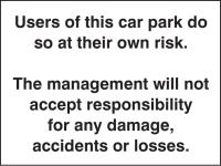 17540Q: Users of this car park do so at own risk Material: 1: Rigid Plastic Size: Q (600x450mm)