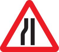 57764: Road narrows left side class R2 Permanent 600mm Tri (3mm aluminium composite)