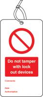 55073: Lockout Tag - Do not tamper with lock out devices (80x150mm) Pk of 10
