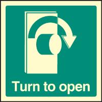 42037U: Turn to open right Material: 4: Photoluminescent S/A Vinyl Size: U (100x100mm)
