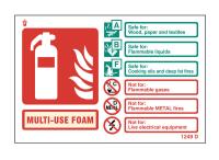 11249S: Multi-use foam extinguisher identification Material: 1: Rigid Plastic Size: S (75x200mm)