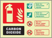 51254: Fire ID - CO2 visual impact photoluminescent sign 200x150mm c/w stand off locators