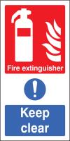 11056V: Fire extinguisher keep clear (multi purpose) Material: 1: Rigid Plastic Size: V (300x150mm)