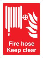 21007E: Fire hose keep clear Material: 2: Self Adhesive Vinyl Size: E (200x150mm)