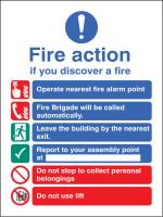 21428E: Fire action brigade dialled automatically with lift Material: 2: Self Adhesive Vinyl Size: E (200x150mm)