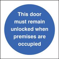 11619B: Door must remain unlocked when premises occupied Material: 1: Rigid Plastic Size: B (80x80mm)