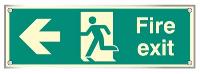 59471: Fire exit left visual impact 5mm acrylic photoluminescent sign 450x150mm c/w stand off locators