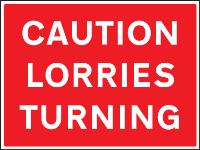 16438Q: Caution lorries turning Material: 1: Rigid Plastic Size: Q (600x450mm)