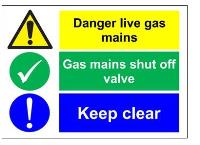 SPECDANGER - danger live gas mains a4 rigid plastic (103365)