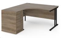 Maestro 25 left hand ergonomic desk 1400mm with black cantilever frame and desk high pedestal - Nebraska Oak