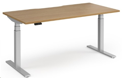 Elev8 Luxe Straight Sit-Stand Desk 1600mm x 800mm - Silver Frame / Oak Top
