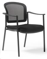 Joni upholstered seat and mesh back, black frame stacking chair, arms