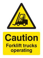 14215K: Caution forklift trucks operating Material: 1: Rigid Plastic Size: K (400x300mm)