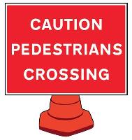 58212: Caution pedestrians crossing reflective cone sign 600x450mm (cone not included)