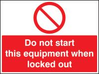 16243Q: Do not start this equipment when locked out Material: 1: Rigid Plastic Size: Q (600x450mm)