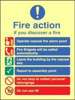 41408E: Fire action auto dial with lift Material: 4: Photoluminescent S/A Vinyl Size: E (200x150mm)