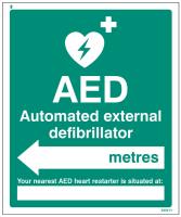 15995H: AED located in XXX metres - arrow left Material: 1: Rigid Plastic Size: H (300x250mm)