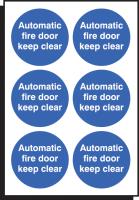 51681: Auto fire door keep clear 65mm dia - sheet of 6
