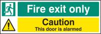 22061G: Fire exit only caution this door is alarmed Material: 2: Self Adhesive Vinyl Size: G (300x100mm)