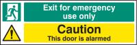 22065L: Exit for emergency use only caution this door is alarmed Material: 2: Self Adhesive Vinyl Size: L (450x150mm)